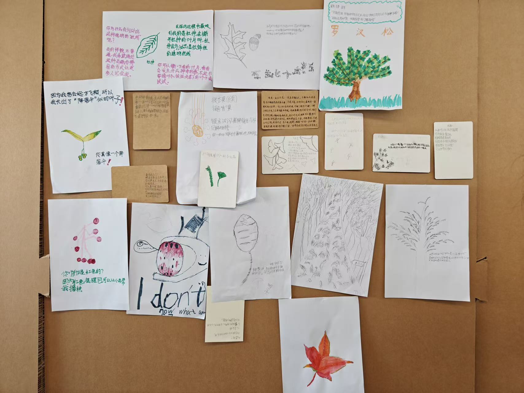 孩子们用银杏叶、陶泥、吸管等材料挥洒创意,既有粘土还原的植物园角落,也有叶片拼接的生态图景,每件作品都承载着对自然的思考。