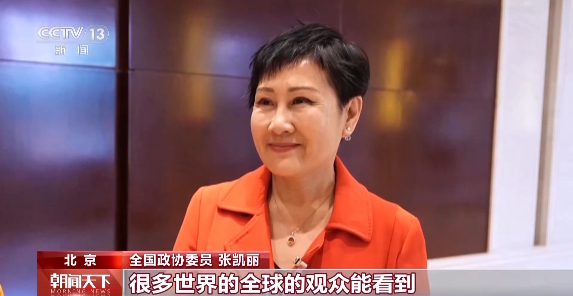 全国政协委员 张凯丽:一部电影,全球的观众能看到,关键是他们可以通过电影了解到中国现在的变化、中国的文化,对中国文化感兴趣。因为现在越来越多的外国友人来中国,“跟着电影游中国”,这个让人看了太兴奋了。